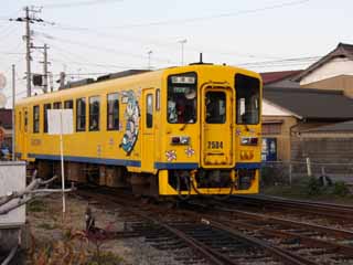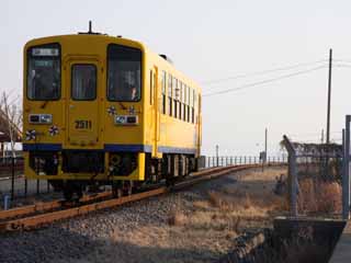 | 旧国鉄車両を発見! 後ろには、『しまてつ』の象徴でもある「赤ひげ三本?」 |