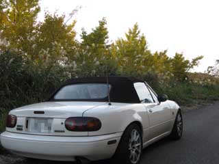 | 近くにソニックパーク安心院なるカートコースもありました。 現地までは行きませんでしたが(途中で引き返した)、 途中のイチョウ、ススキをバックに記念撮影♪ |