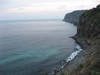 | 気持ちイイほどの垂直な 断崖絶壁です。 夕焼け前の空もなかなか綺麗です。 |