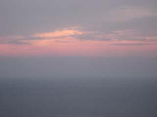 もちっと雲が少なかったらなぁ〜・・・。 灯台の上から眺める夕焼けの空です。 |