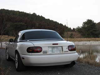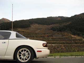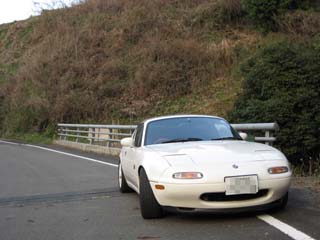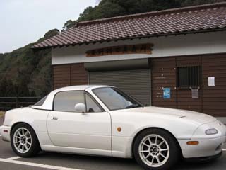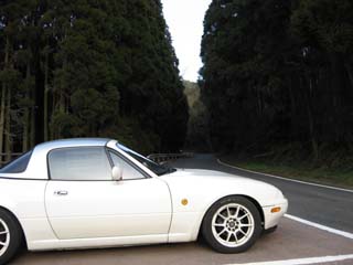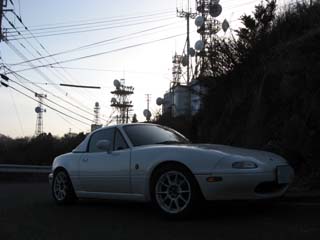 なんとか夕方になる前に、八幡岳頂上に到着。 今日はオープン走行ではありません。 ハードトップを装着したら、重過ぎて 取り外すのが面倒なんだもん。(^^ゞ |