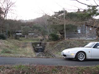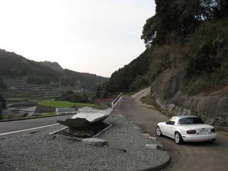 | 棚田から降りていくと、こんなモニュメントが・・・。 と思ったら、”湧き水”のよ〜でした。 |