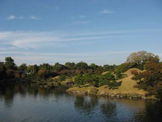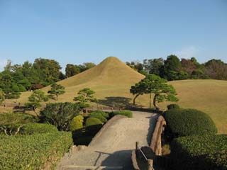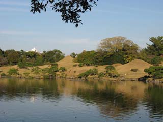 江戸時代(?)に東海道五十三次の 景観を真似て作られたものらしい。<水前寺公園 −−−−−−−−−−−−−− 凡そ370年前、細川忠利公(初代肥後藩主)、光尚公、 綱利公の三代に渡り築造された桃山式庭園。 |