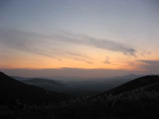 俵山から阿蘇山方面を望むの図です。 日没後だったので、少々暗い写真になりました。(苦笑 |