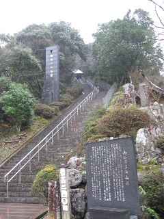 | 九州道・御船ICで高速を下りる時、いつも気になっていた看板です。 「日本一の石段」ってどんなんだ? 天気はあいにくの雨でしたが、行ってみました。 |