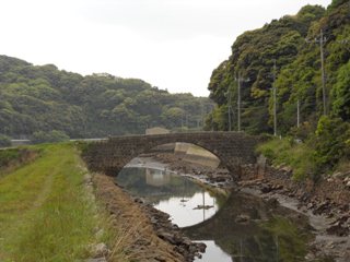 | ネットで調べてみると・・・・ −−−−−−−−−−− 大正9年(1920年)7月に、八幡崎新田の 堤防に架橋された小佐々町唯一の アーチ型の石橋。アーチの形が川に映った ときに円になり、太鼓のように見えるので 太鼓橋と呼ばれるようになった。 −−−−−−−−−−− だそうです。<手抜き!(爆 |