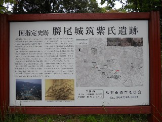 | 勝尾城の案内板がありました。 ふむふむ・・・ 戦国時代にココは筑紫氏の城があった場所だとか。 とか言っても、ココから勝尾城跡までは徒歩50分の 登山道。(/・ω・)/ |