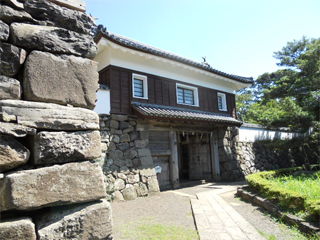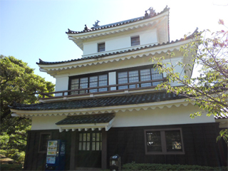 天守閣に入るには写真の発券所で チケットを購入します。<大人500円 狸櫓より撮影。 |