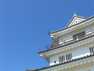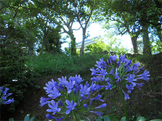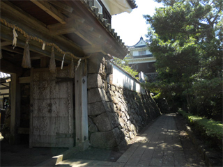天守閣より亀岡神社に向かいます。 綺麗な青い花も咲いてました。 |