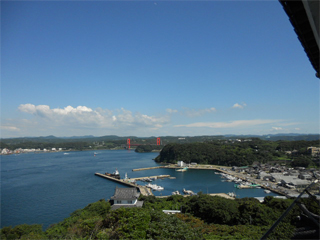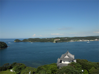向かいは九州本土。 下に写ってるのは、見奏櫓です。 |