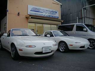 装着を行ったのは、SOFTRACYさんです。 偶然にも白いNA8Cが止まっていたので、 勝手に並べて無断で撮影しちゃいました♪(^^ゞ |