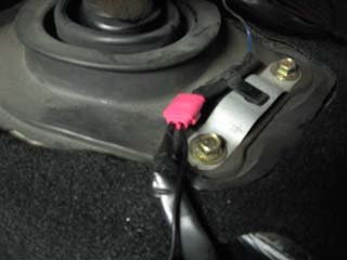 プチッとロックオンっす!(笑 サイドブレーキをしないと、使い辛い&使用勝手が 悪いと某Y氏の助言を受け、結局ブレーキ配線から 配線しないで、ボディアースを取って対応しました。 (アースを取った場所はシフト後ろ側のボルトです。) |