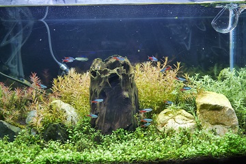 | 504日目(8/15) レッドテトラ 2匹 ヤマトヌマエビ 4匹 ミナミヌマエビ 10匹 レッドビーシュリンプ 12匹 チェリーシュリンプ 1匹 をGHD水槽へお引越し♪ ・・・の引換え(?)にネオンテトラ10匹を新規追加です。 吸込み口フィルター清掃、1/2程度の換水。 PSB(濃縮タイプ)、10ml注入。 現在の水槽の様子です♪ |