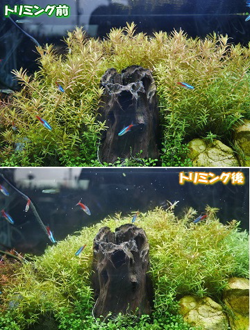 | 573日目(10/23) 背景草のロタラインディカをトリミング。 2/3程度の換水。 PSB(濃縮タイプ)、20ml注入。 Tetra FloraPride、10ml注入。 |