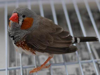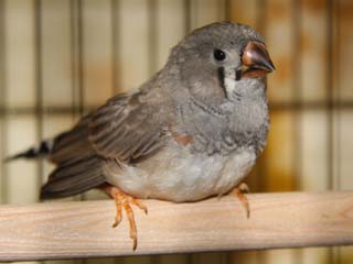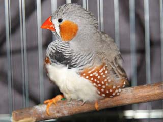 嘴も綺麗な朱色、ほっぺたもオレンジ色に。 胸元は父親のミズキとは違い、白と黒の 縞々模様のゼブラです。 性格は・・・ はい、近寄ると逃げ回ります。 気が小さく、臆病者みたいです。(笑 |